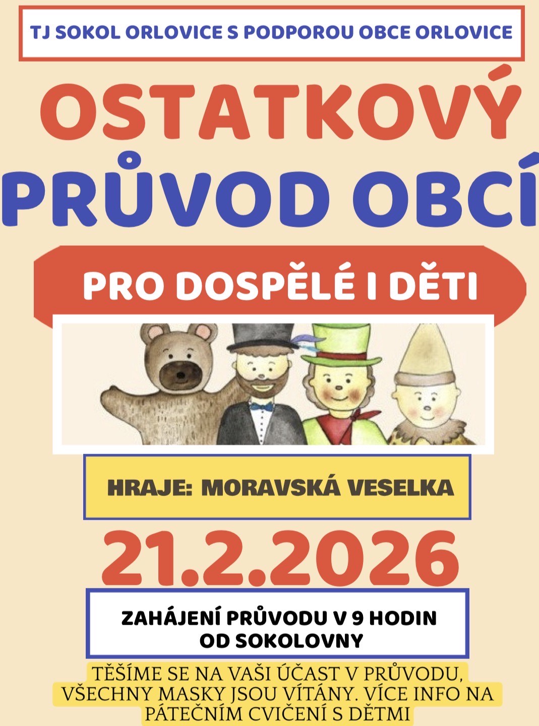 Ostatkový průvod obcí pro dospělé i děti
